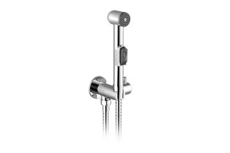 BM 040.00 Настенный вентиль с ручным гигиеническим душем. Содержит вентиль для включения/выключения воды, душевой держатель с выходом для шланга и гигиенический душ с кнопкой. Предназначен для холодной воды или смешанной воды из душевого смесителя скрытого монтажа.