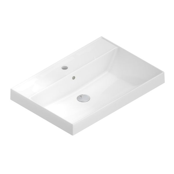 Компактная мебельная раковина с тонкими бортиками и отверстием под смеситель, ширина 70 см. Чаша раковины расположена в центре, с отверстием слив\перелив. Возможна подвеска раковины на стену без тумбы (крепления входят в комплект). Донный клапан в комплект не входит, рекомендованный донный клапан DR.1\WHT. Рекомендуется использовать со смесителем FUTURA 66411KM.21.018. Сочетается с тумбами из серии CUBO.