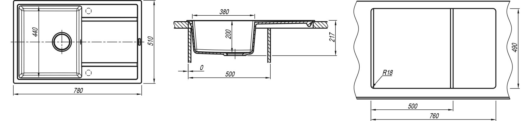 - Отверстия под смеситель:нет