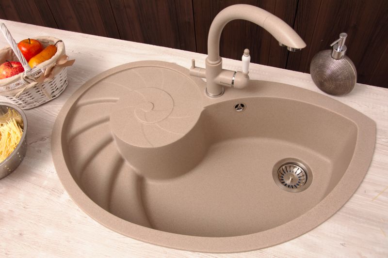 Необычная кухонная мойка, напоминающая форму раковины Наутилус
