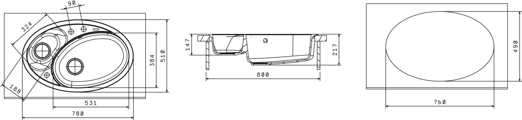 - Отверстия под смеситель:нет