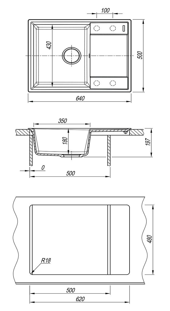 • Отверстия под смеситель: