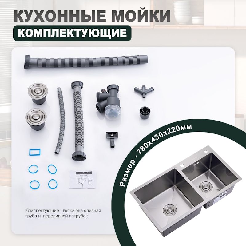 Кухонная мойка Splenka S706.7843.05, сатин. Размер - 780*430*220мм. Кухонные мойки Splenka отлич... Подробнее