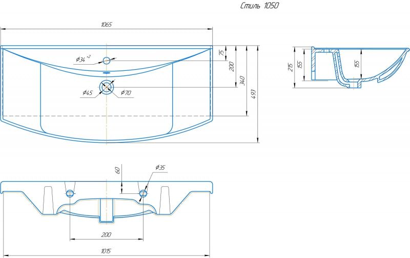 Мебельная раковина Kirovit Стиль 105 см купить