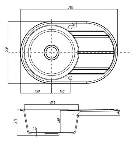 - Отверстия под смеситель:нет
