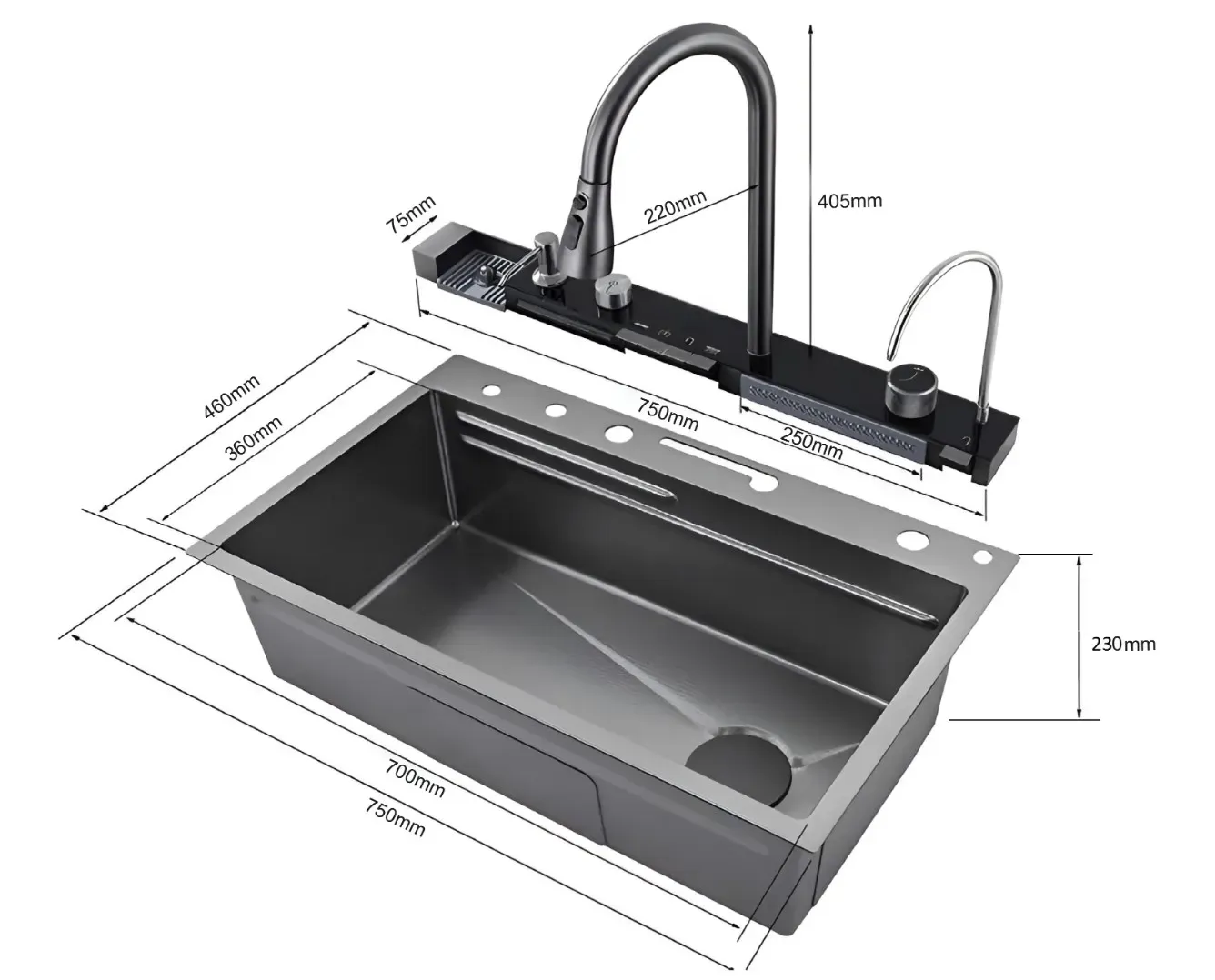 Многофункциональная мойка бренда Ceruttispa, выполненная из нержавеющей стали, толщиной 3мм – для ценителей комфорта, удобства и порядка на кухне! Она соединила в себе все самые необходимые на кухне аксессуары!