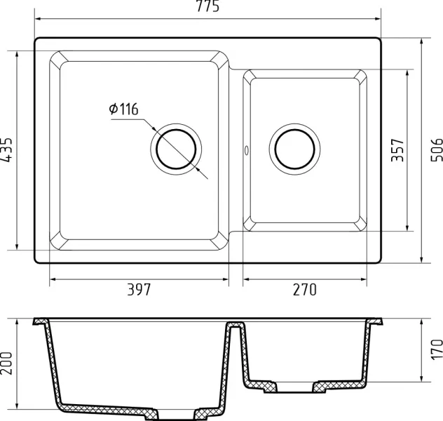 Общий размер: 775 * 506 мм