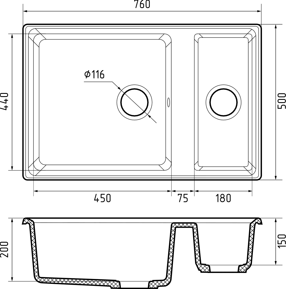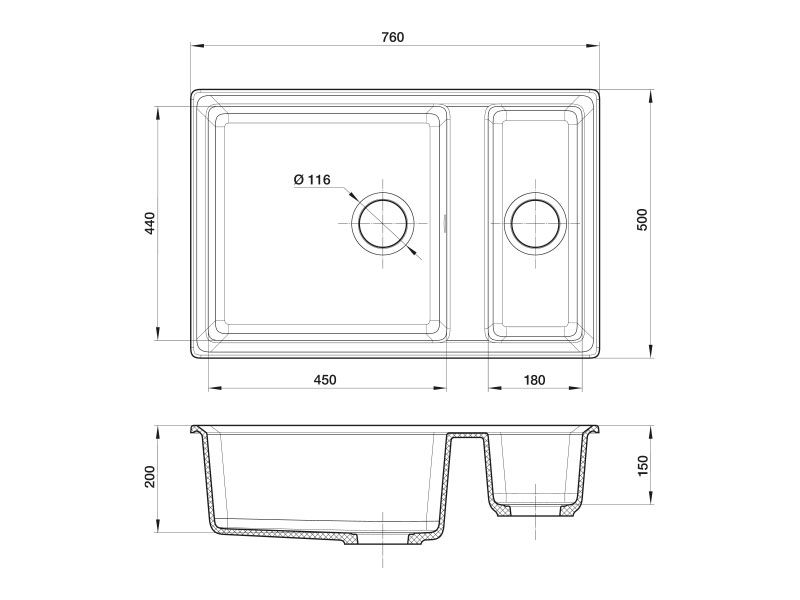 Размеры чаш: 450x440x200, 180x440x150 мм