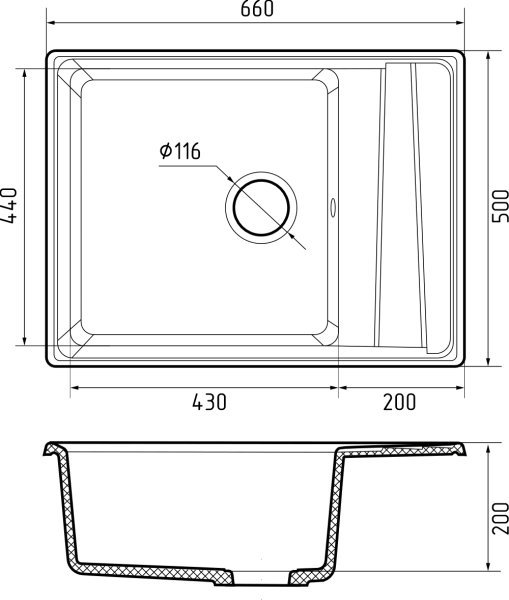 Мойка кухонная GranFest LEVEL LV-660L серый