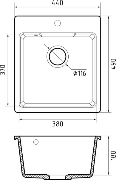 - Отверстия под смеситель:1