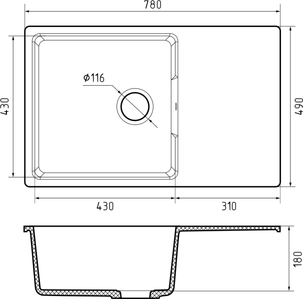 Комплектация: сливная арматура с корзинчатым вентилем (Ø 3.5""/90 мм), тех.паспорт, гарантийный талон."