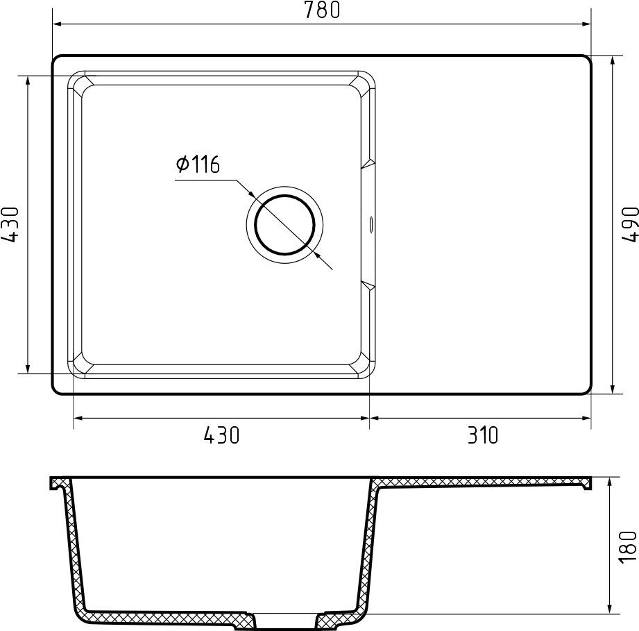 Общий размер: 780 * 490 мм