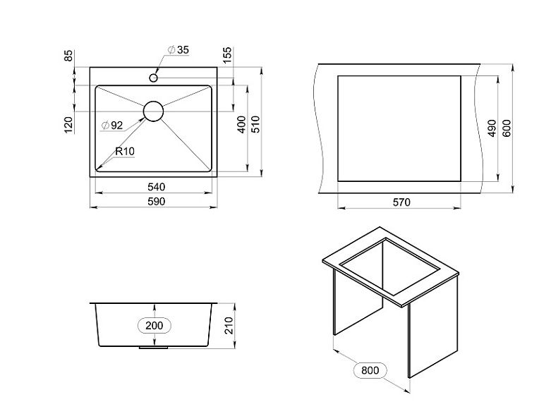 - Отверстия под смеситель:1