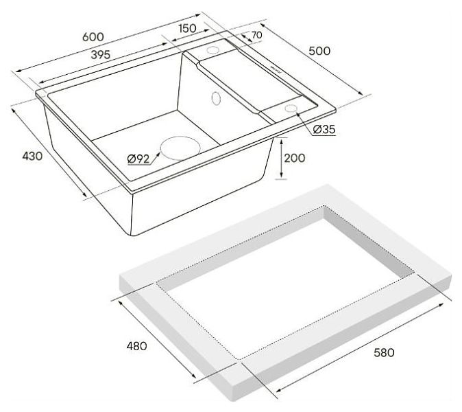 Материал мойки устойчив к механическим повреждениям, а также выдерживает температуру до 180 градусов.