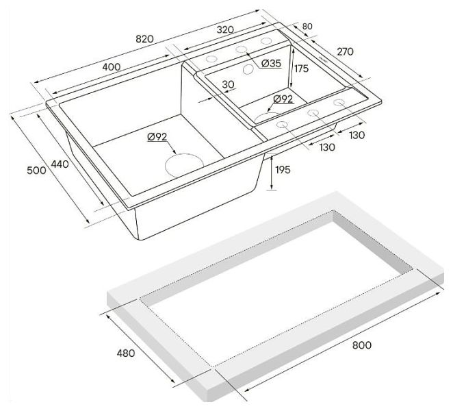 Материал мойки экстремально устойчив к механическим повреждениям, а также обладает повышенной термоустойчивостью и пожаробезопасностью.