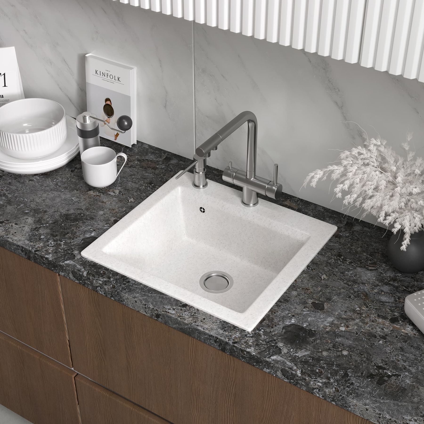 Удобная вместительная мойка подходит для установки как в угловой шкаф кухни, так и в прямые модули.