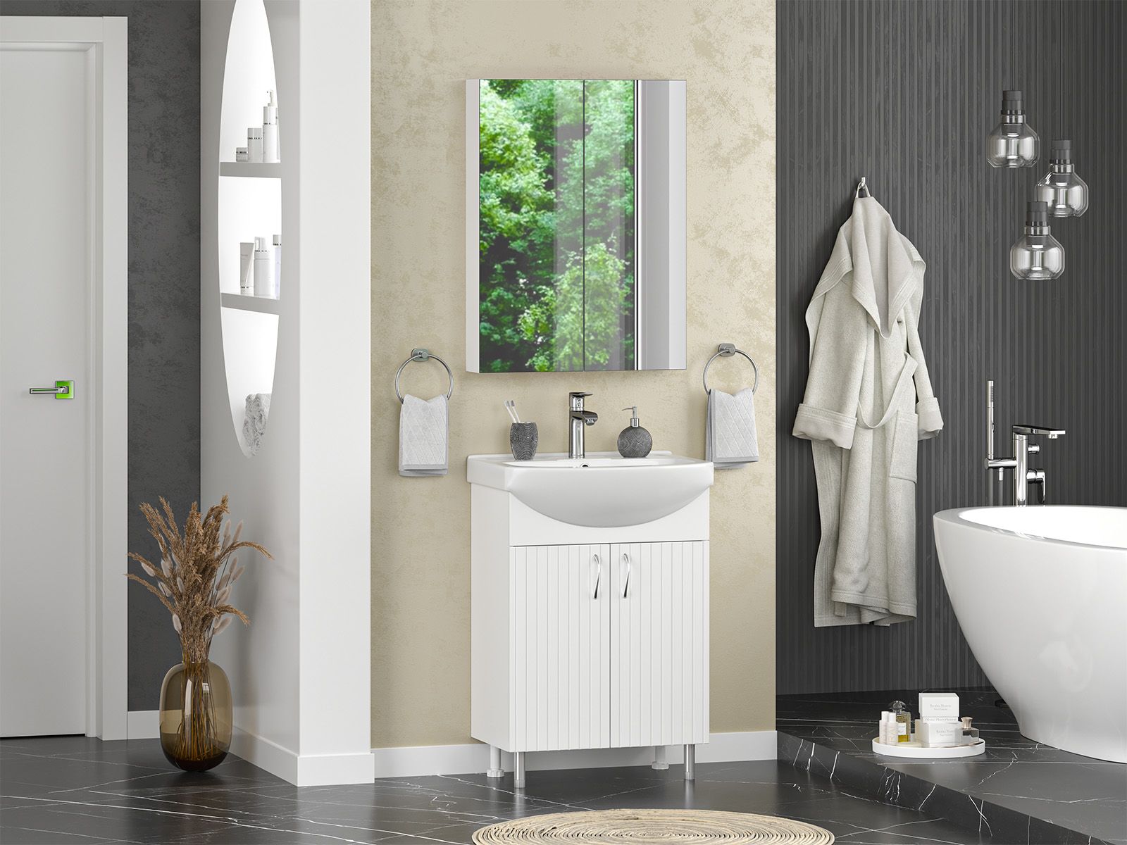 Напольная тумба под раковину – это не просто элемент мебели, но настоящее произведение искусства, которое сочетает в себе функциональность и изысканный дизайн. Изготовленная из высококачественных материалов, она гарантирует долговечность и устойчивость к воздействию влаги.Удобная система хранения позволяет размещать все необходимое для гигиенических процедур, а её продуманные размеры отлично вписываются даже в небольшие помещения. Стильные ручки и элегантные фасады придают тумбе особый шарм, а разнообразие цветовых решений позволит выбрать модель, соответствующую любому интерьеру – от классического до модерн.Мягкие линии и непринужденные формы делают тумбу неотъемлемой частью ванной, превращая её в любимое место для отдыха. Совершенное сочетание эстетики и практичности позволяет создать гармоничный и стильный интерьер, что делает напольную тумбу для ванной комнаты идеальным аксессуаром для любого дома.