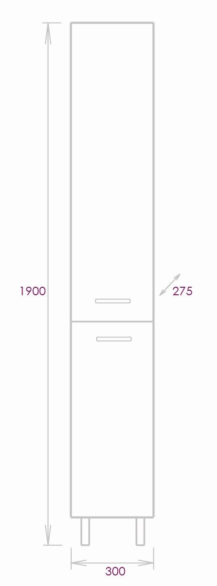 Размер пенала с ножками: 30х28х190 см.