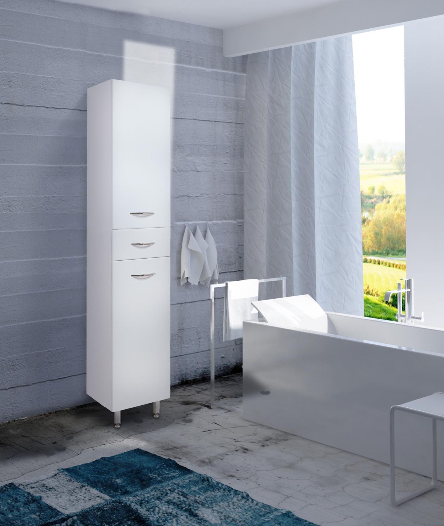 Напольный пенал для ванной комнаты Onika МОДЕРН 26, благодаря простому минималистичному дизайну и белому глянцевому фасаду, подойдет под любой интерьер ванной комнаты.