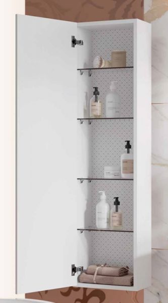 Подвесной шкаф-пенал Clarberg Elegance 40 EL0504 с объемным узором, с одной распашной дверцей и пятью стеклянными полками. Для использования в ванных комнатах с повышенной влажностью.Технические данные:Цвет: матовый белый.