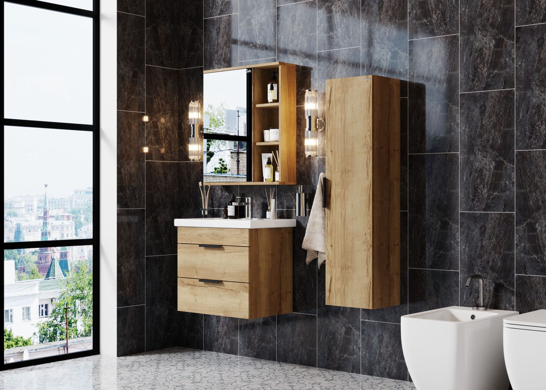 Подвесной пенал для ванной комнаты Onika ЛЕГРАН 30 - это сочетание насыщенного древесного декора и благородства металла: роскошная текстура и натуральный цвет дуб галифакс дают теплоту, а матовая металлическая ручка добавляет урбанизма и солидности.