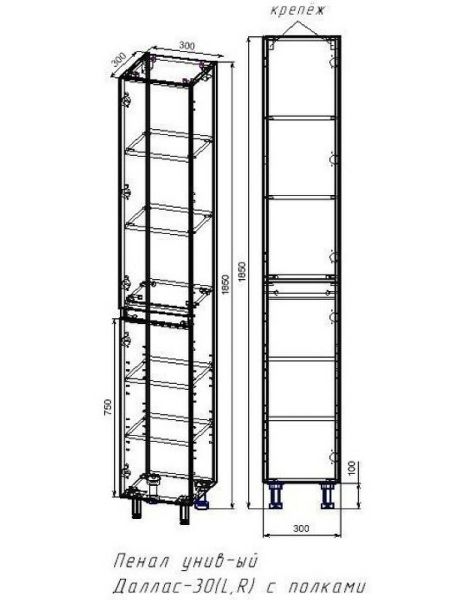 Габариты (ШхВхГ): 300х1850х300 мм.