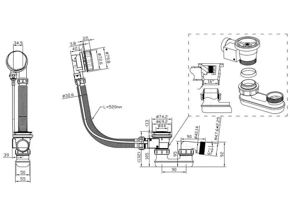 Перелив п/а с сифоном плоский 600мм (металл) CK60PF Подробнее