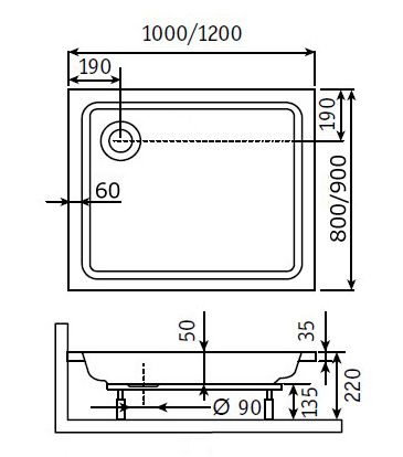 Акриловый поддон для душа