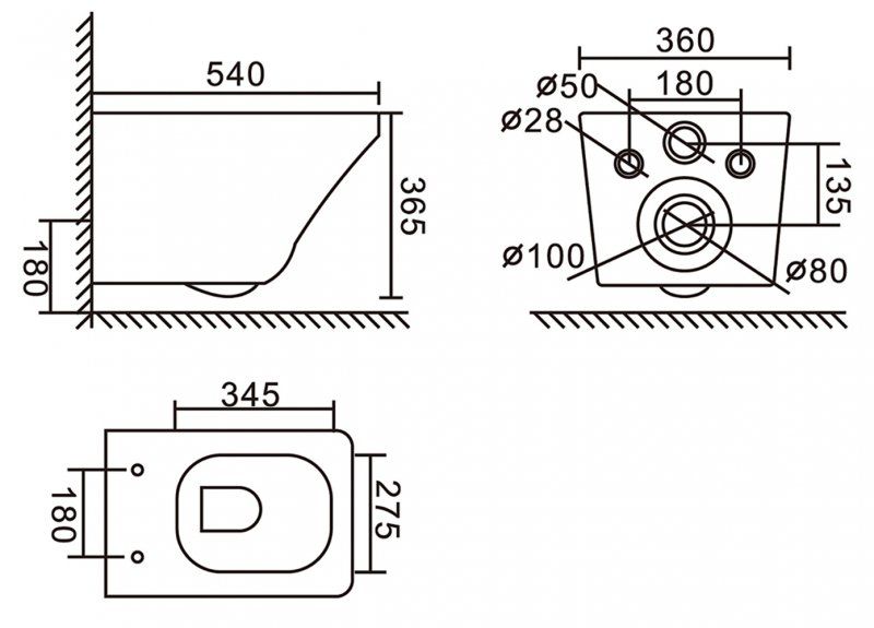 • Прилегание унитаза к стене: