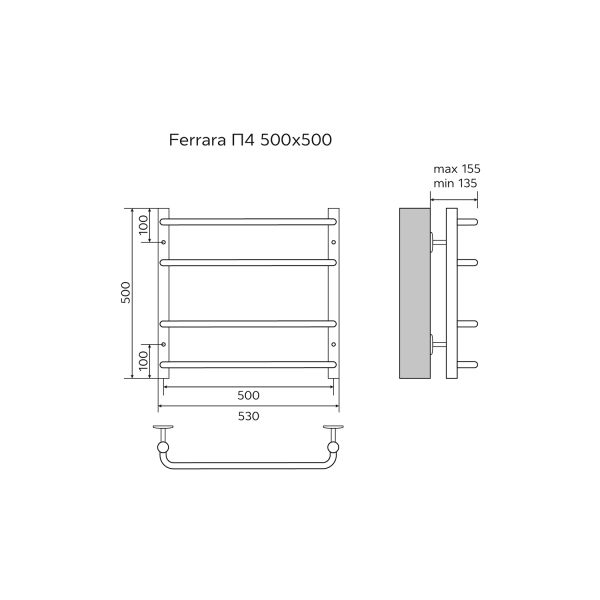 Полотенцесушитель водяной AZARIO FERRARA AZ09155 500/500 4 секций, нижнее/диагональное подключение, 1/2, хром купить