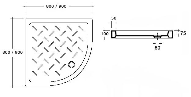 Полукруглый керамический поддон RGW CR/R-088 800х800х100 купить