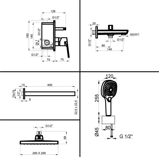 - Размер верхнего душа, мм 200