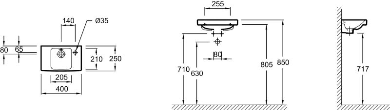 РАЗМЕТКА СВЕРЛЕНИЯ ОТВЕРСТИЯ ДЛЯ СМЕСИТЕЛЯ: С 1 отверстием для смесителя