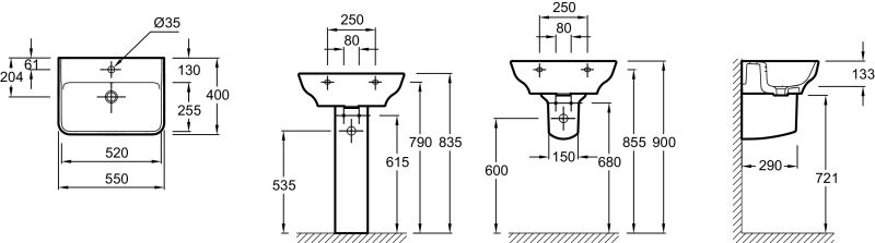 РАЗМЕТКА СВЕРЛЕНИЯ ОТВЕРСТИЯ ДЛЯ СМЕСИТЕЛЯ: 1 отверстие для смесителя