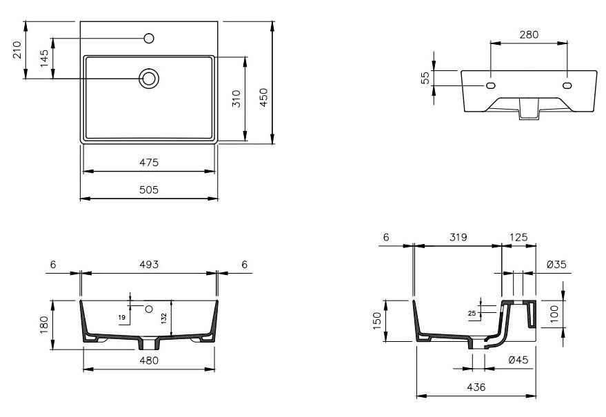 - Отверстия под смеситель:1