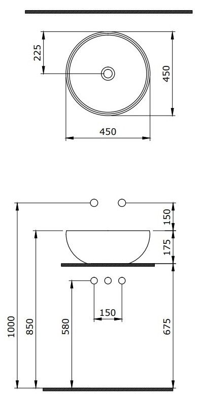 Накладная раковина из санфарфора Berges Mascon диаметром 45 см. Высота 17,5 см. Круглой формы, без отверстия под смеситель, глянцевая белая.