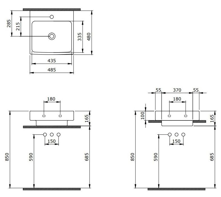 - Отверстия под смеситель:1