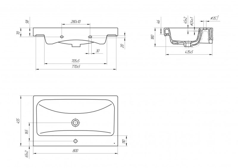 Раковина Cersanit MODUO 80 S-UM-MOD80/1Прямоугольная мебельная раковина MODUO с отверстием под смеситель, размером 80 см.