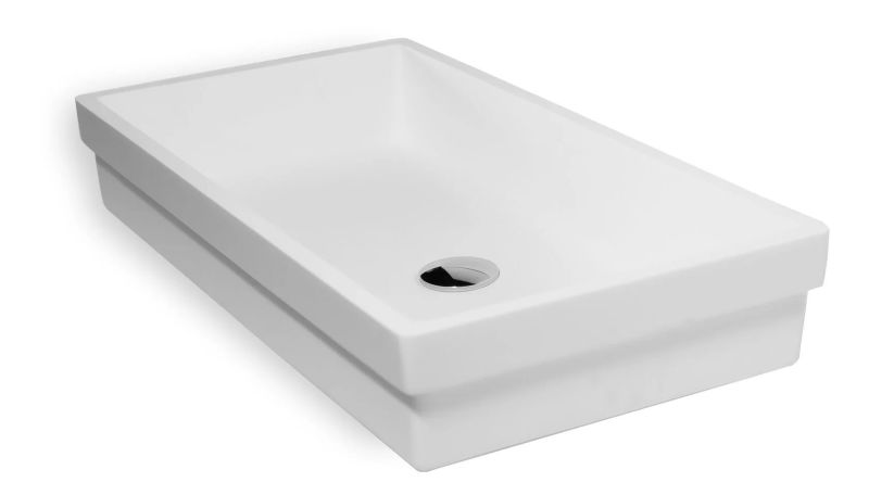 Раковина из искусственного камня для ванной комнаты линейки Montebianco Castello Uno / Castello Due.Практичной прямоугольной формы со смещенным от центра сливным отверстием. Установка любым из двух способов: накладным на поверхность столешницы или мебели сверху или бесшовно вклеиванием в столешницу любого цвета, создавая цельную поверхность, единое изделие. Уход за раковиной из искусственного камня прост: в большинстве случаев достаточно протереть поверхность влажной губкой с чистящим средством. Материал не впитывает влагу, не порист, непроницаем для плесени, бактерий и грибков. Castello Due имеет матовую, бархатистую поверхность. Полимерный материал принимает температуру окружающей среды, поэтому в жилом пространстве данная модель раковины всегда будет приятной на ощупь. Отличие Castello Due от Castello Uno – в размерах (Castello Due заметно длиннее) и вариантах установки.