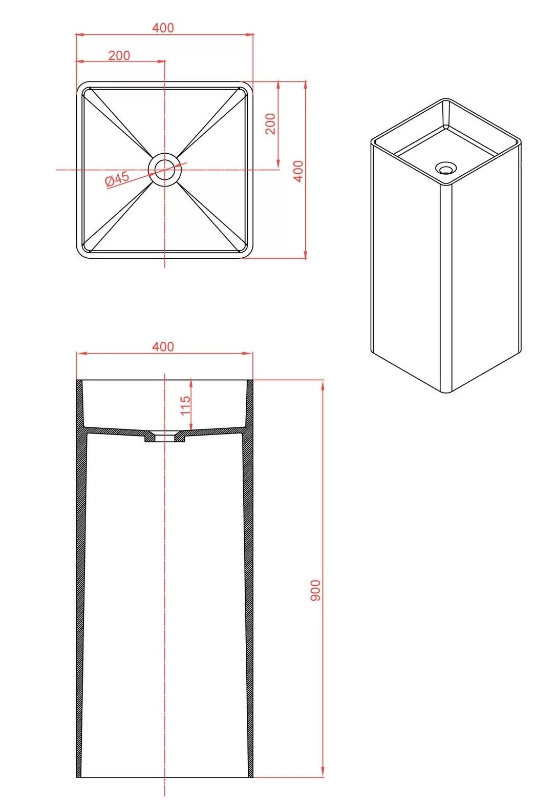 ДxШxВ: 400x400x900 мм