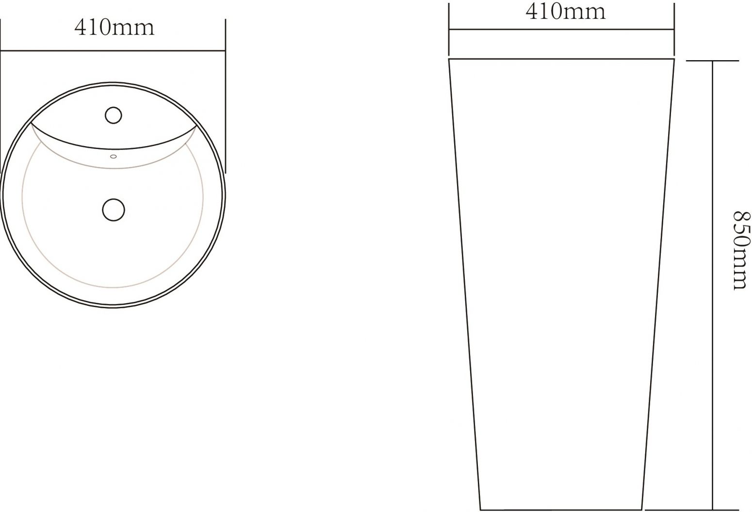 - Отверстие под смеситель: по центру.