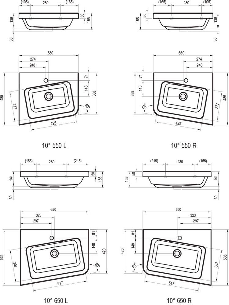Раковина Ravak 10° 550 L XJIL1155000 левый купить