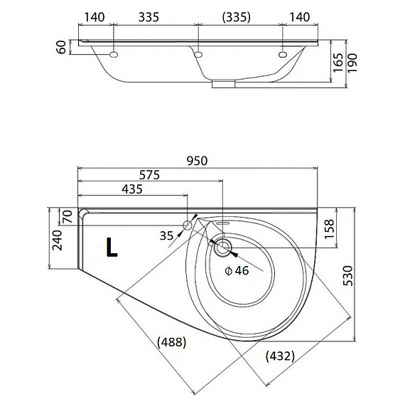 - отверстие под смеситель: 35 мм