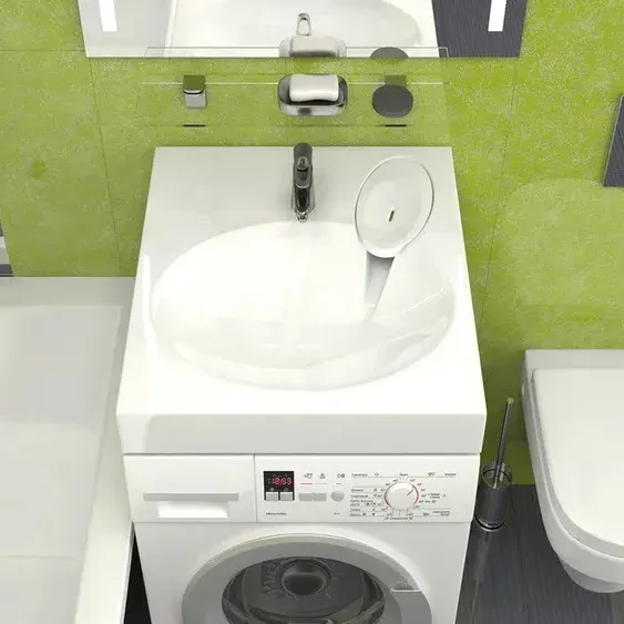 Раковина Reflexion Alpha спроектирована специально для установки над стиральной машинкой. Она имеет неглубокую чашу и горизонтальный слив. Благодаря ему умывальник из искусственного мрамора для ванной комнаты отводит воду в сифон, который проходит позади стиральной машины. Это защищает технику от случайных утечек.