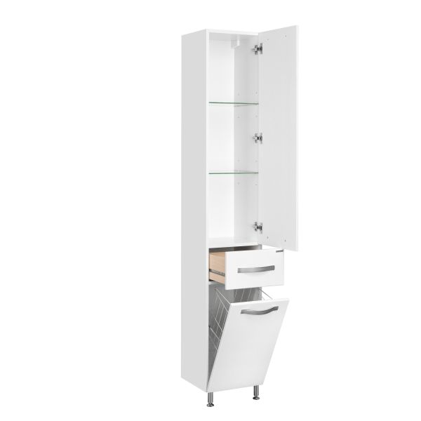 Шкаф-пенал Акватон Ария Н белый не только не только функциональный предмет интерьера ванной комнаты, но превосходное эргономичное дополнение дизайна, как небольшого, так и крупного помещения.Компания Акватон использует при производстве высококачественные водоотталкивающие материалы, соответствующие всем необходимым требованиям безопасности. Коллекция Ария выполнена в эксклюзивном дизайнерском решении в лучших традициях современного стиля. Белый, основной цвет исполнения Акватон Ария, отлично подходящий большинству дизайнерских решений. Шкаф-пенал предусматривает удобную и вместительную систему хранения, состоящую из дверей, ящиков. Качественные доводчики позволяют обеспечить мягкое и тихое закрывание. Важные габариты изделия: ширина 34 см, глубина 31.6 см, высота 200 см. Наличие бельевой корзины с вентилируемыми отверстиями позволит скрыть от посторонних глаз грязные вещи.Россия родина бренда Акватон, вся продукция производится со строгим соблюдением всех стандартов, благодаря чему можно быть абсолютно уверенным в надежности и высоком качестве. Шкаф-пенал Акватон Ария Н белый создаст уют и комфорт в любом дизайнерском решении, и ванная комната обретет неповторимый элемент интерьера.