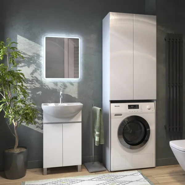 Шкафы Wing – идеальное решение, позволяющее сэкономить пространство ванной комнаты за счет размещения над стиральной машиной