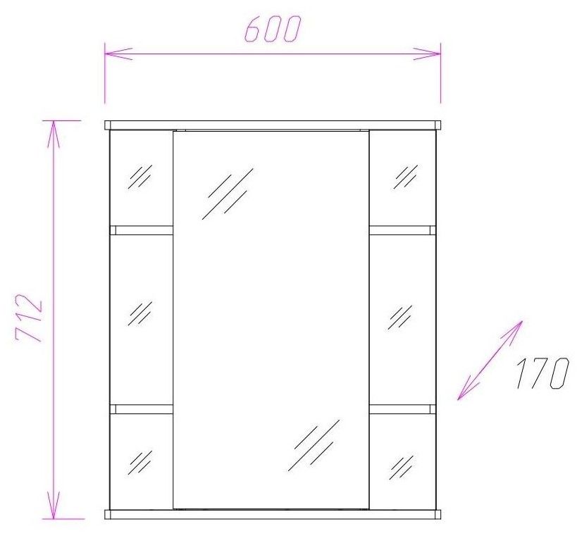 Корпус шкафа-зеркала выполнен из ЛДСП, фасад - из ЛДСП и ЛМДФ в пленке, устойчивых к механическим воздействиям, перепадам температур и высокой влажности.