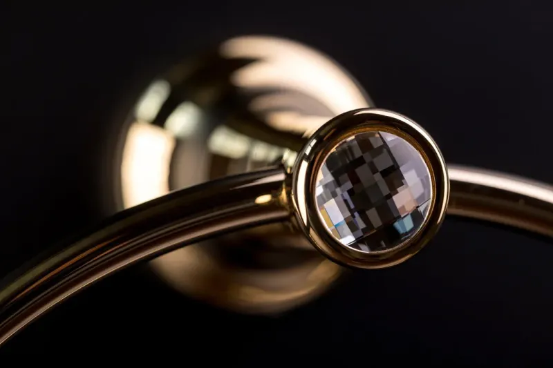 Полотенцедержатель Boheme Chiaro в форме кольца — это элегантный и функциональный аксессуар, который сочетает в себе изысканный дизайн и практичность. Изделие выполнено из высококачественной латуни с декоративными элементами из хрусталя, что придает ему роскошный внешний вид и делает стильным дополнением интерьера ванной комнаты. Классическая круглая форма и компактные размеры (29×9×18 см) позволяют гармонично вписать полотенцедержатель даже в ограниченное пространство, сохраняя эстетику и порядок.