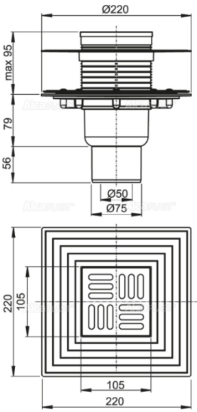 Сливной трап AlcaPlast 105 ? 105/50/75мм решетка - хром APV4344 купить
