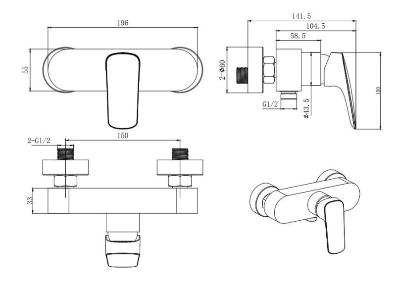 • однорычажная система регулировки силы струи и температуры воды